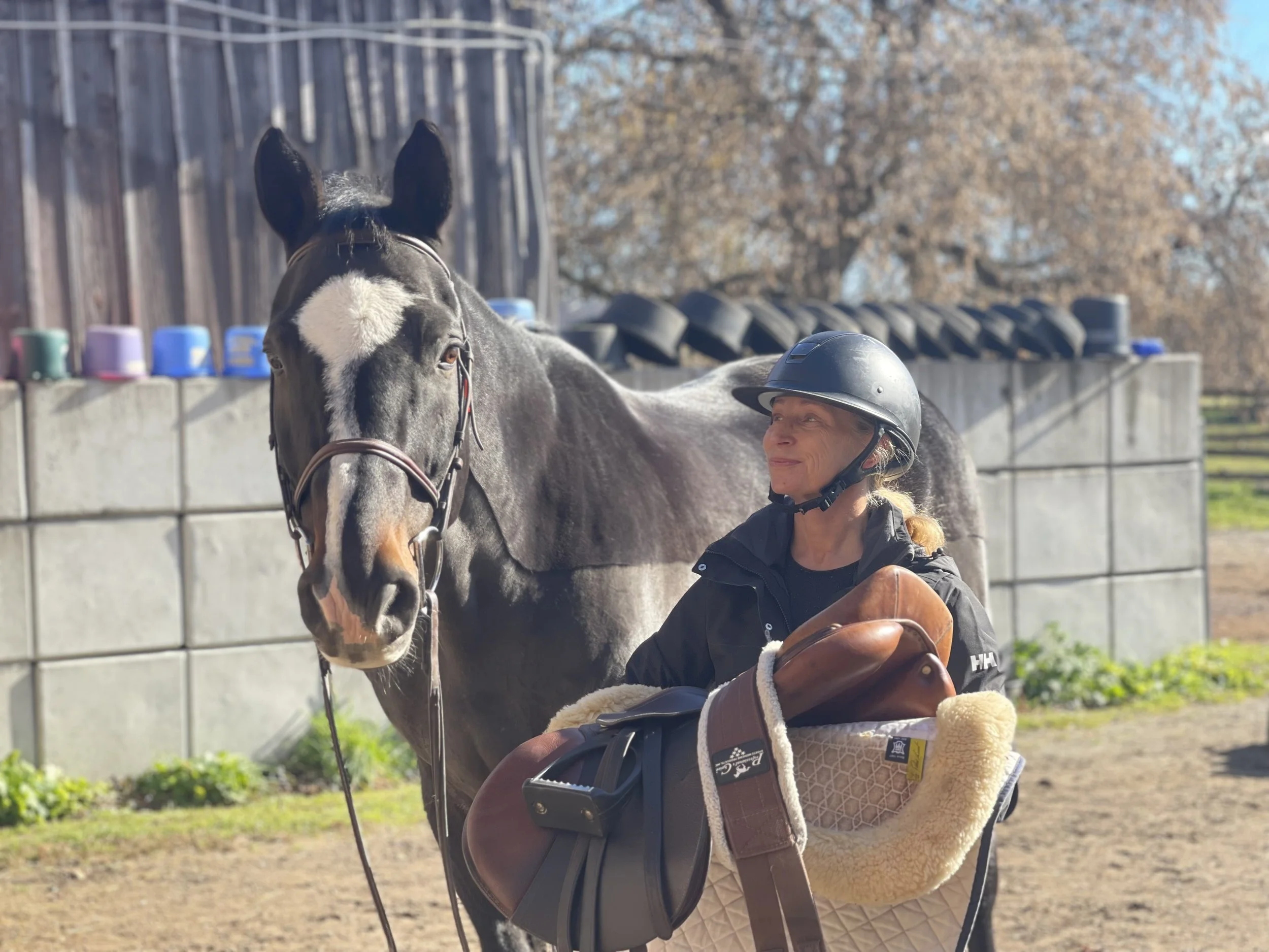 If you are new to the sport, your first lessons will begin in the barn where you will learn to safely and confidently groom and tack up your horse for riding. Once in the ring, your lessons will begin on the lunge line where you will build strength and confidence before riding independently.